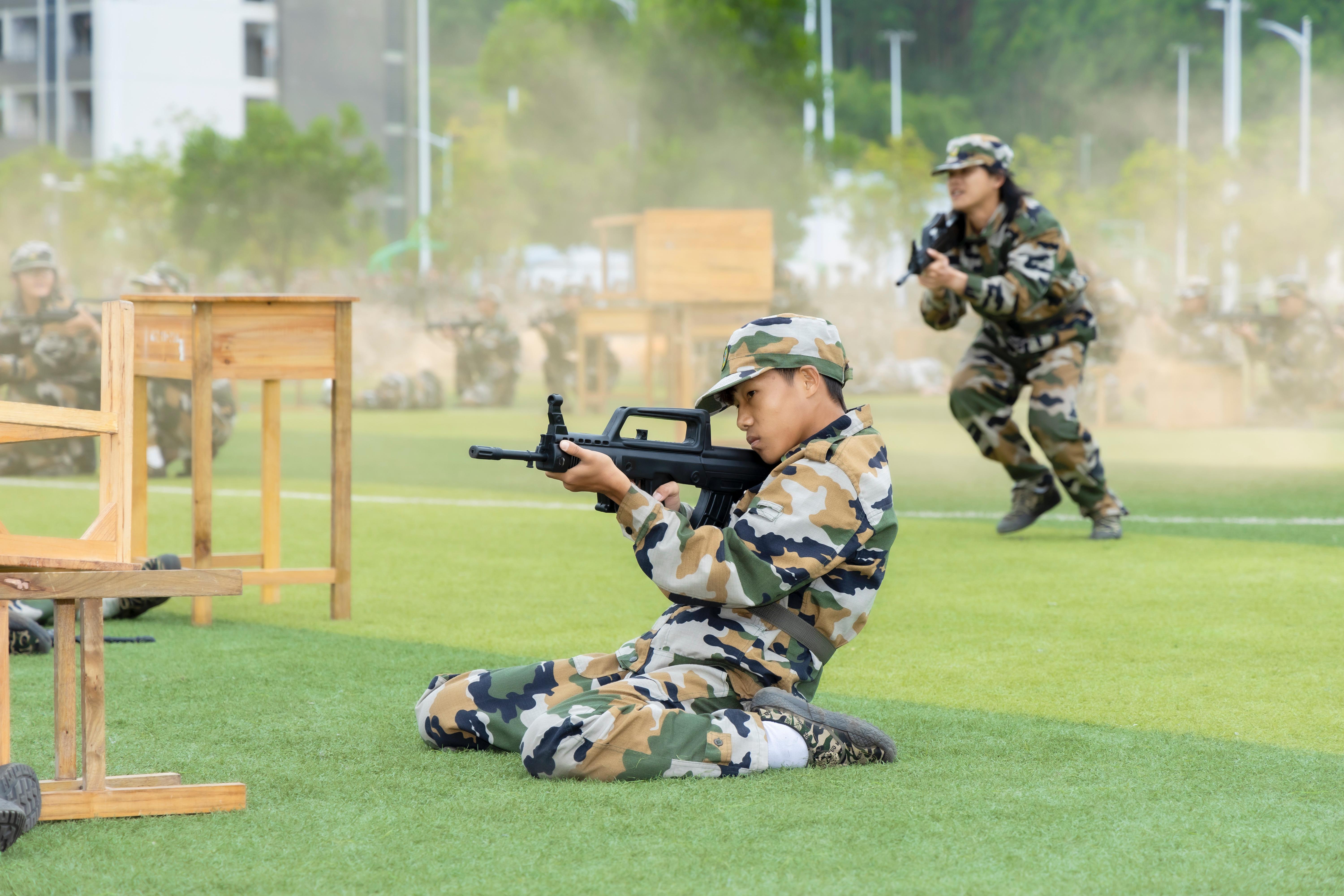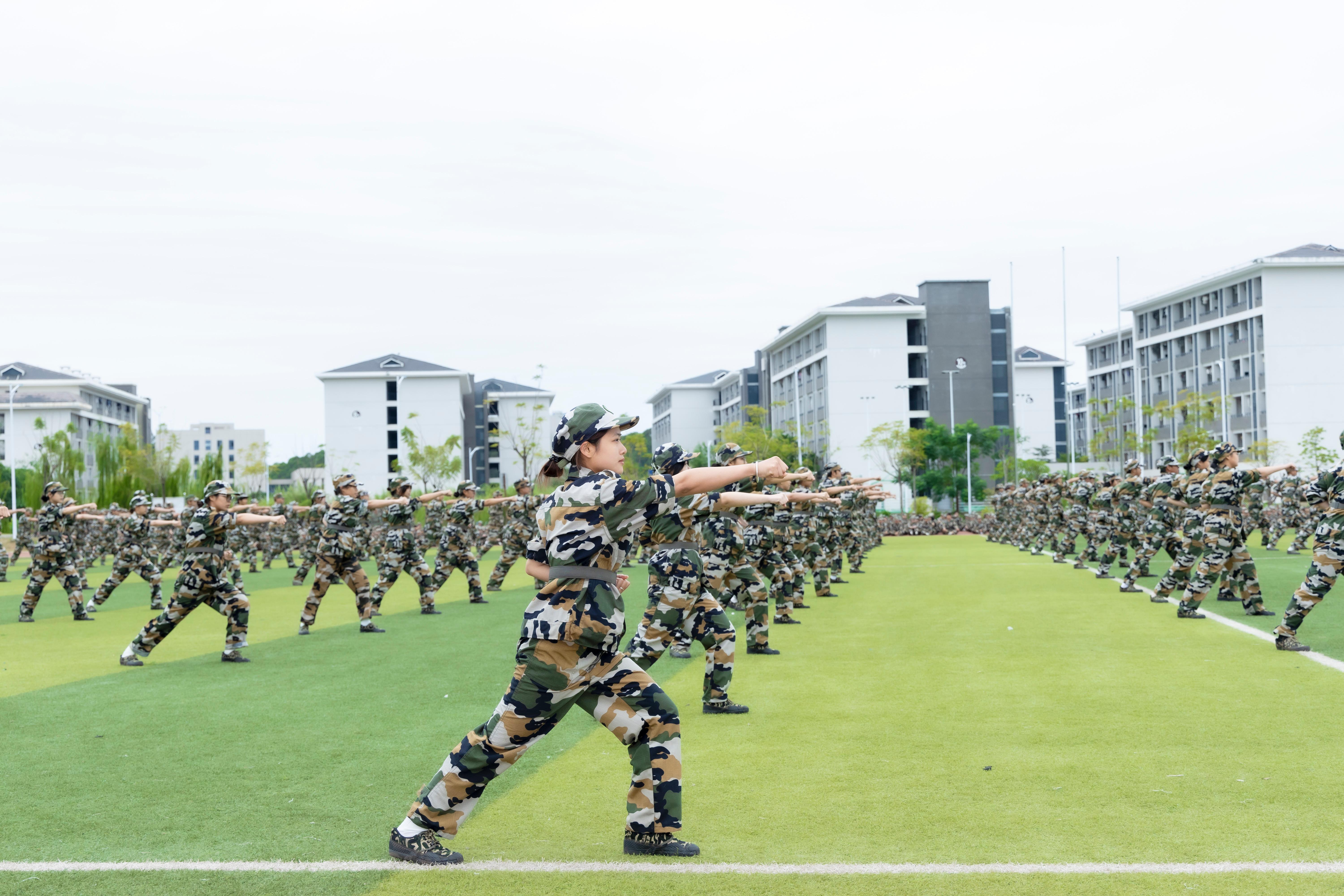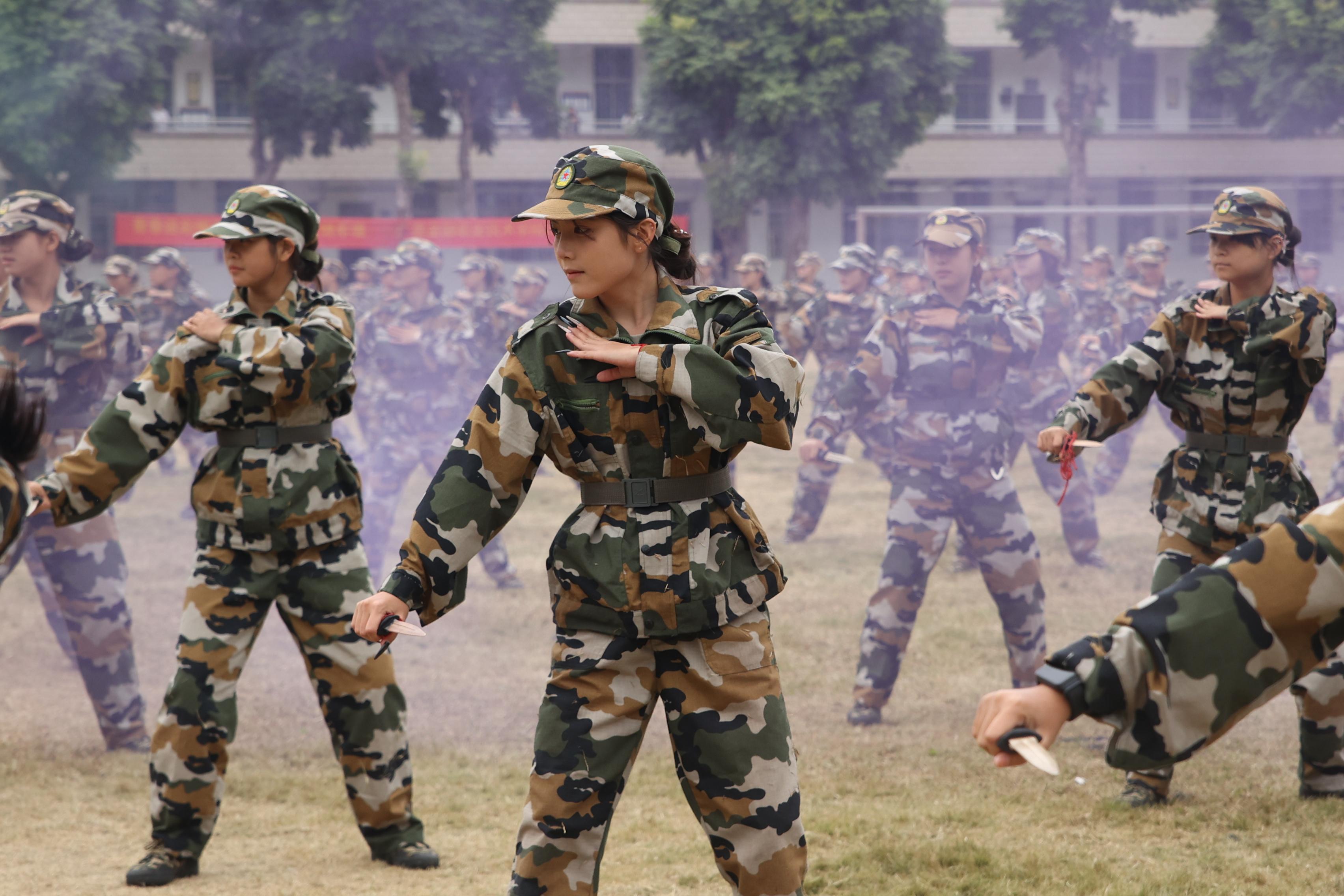 隨后各方隊依次展開軍事技能匯報表演:分列式行進氣勢如虹,擒敵拳演練剛勁有力,刺殺操展示殺氣凜凜,匕首操匯演靈動迅猛,捕俘拳演示招招制敵,警棍盾牌操表演協同默契,戰術科目實景模擬更將現場氣氛推向高潮。參訓學生以堅韌的意志、凝聚力量的口號、彰顯紀律意識的整齊隊列,以及踏響拼搏節拍的鏗鏘步伐,全面展示了軍訓成果,更生動詮釋了這場青春洗禮的深層意義——它讓金院學子在汗水中淬煉了品格,在協作中凝聚了力量,在堅持中涵養了斗志,最終以飽滿的熱情與昂揚的姿態,為大學生活注入了永不褪色的奮斗底色。