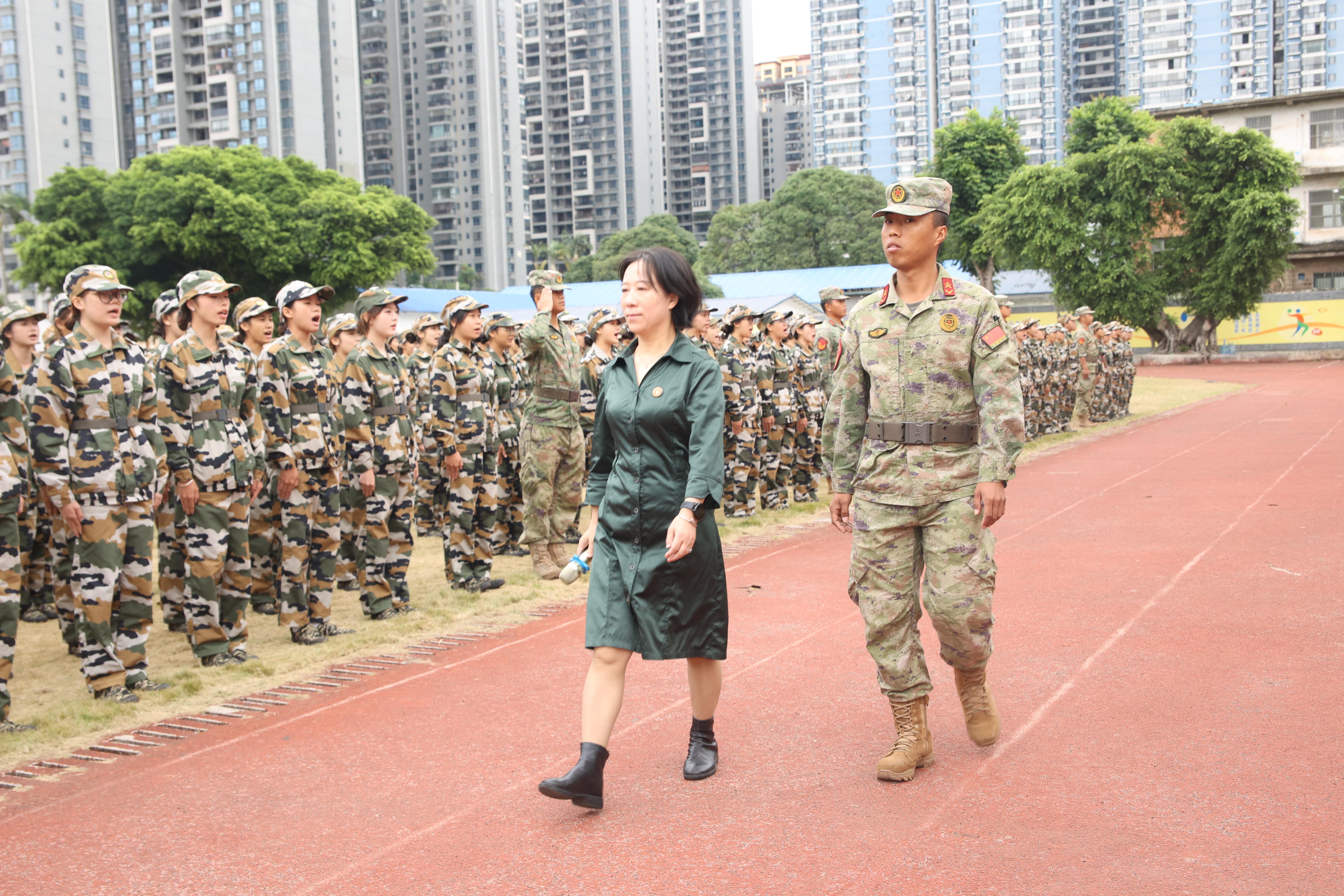 西鄉塘區人民武裝部領導作軍訓總結,肯定了教官、班主任、輔導員和同學們共同付出和努力。