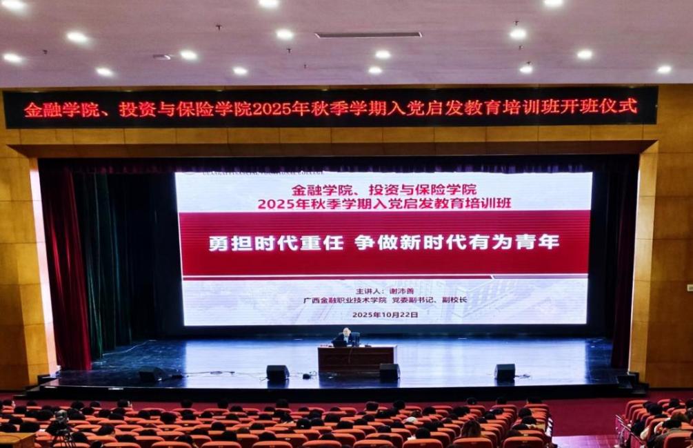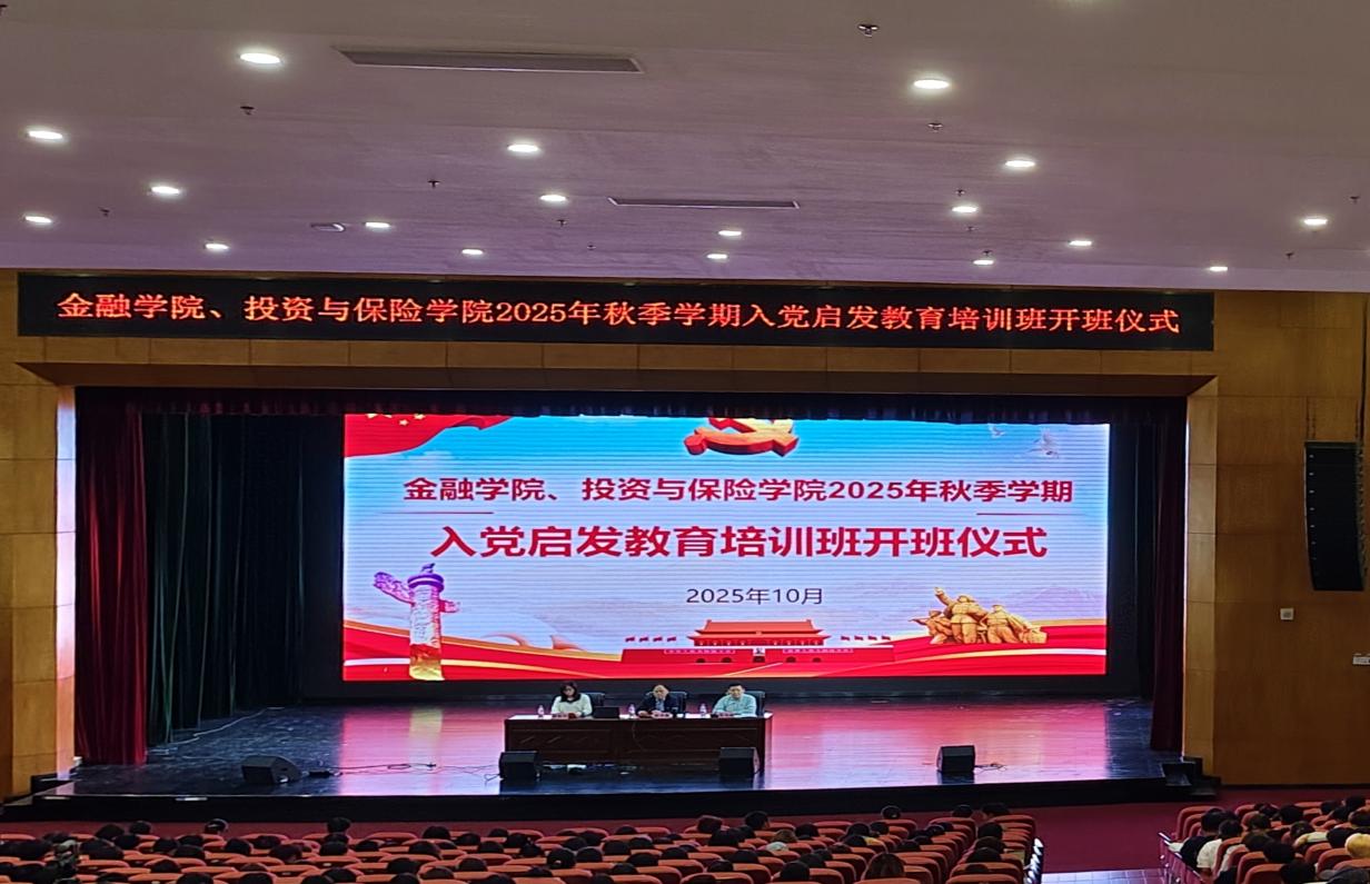 為引導(dǎo)2025級(jí)學(xué)生端正入黨動(dòng)機(jī),筑牢理想信念根基,堅(jiān)定不移聽黨話、跟黨走,10月22日,我校金融學(xué)院黨總支和投資與保險(xiǎn)學(xué)院黨總支在西校區(qū)國(guó)際會(huì)議中心聯(lián)合開展2025級(jí)學(xué)生入黨啟發(fā)教育培訓(xùn)班開班儀式。學(xué)校黨委副書記、副校長(zhǎng)謝沛善出席會(huì)議并講授專題黨課,學(xué)校黨委委員、黨委組織部部長(zhǎng)、金融學(xué)院黨總支書記周海峰出席會(huì)議并講話、投資與保險(xiǎn)學(xué)院黨總支書記、院長(zhǎng)黎秋華出席會(huì)議,金融學(xué)院、投資與保險(xiǎn)學(xué)院2025級(jí)全體學(xué)生及輔導(dǎo)員參加會(huì)議。