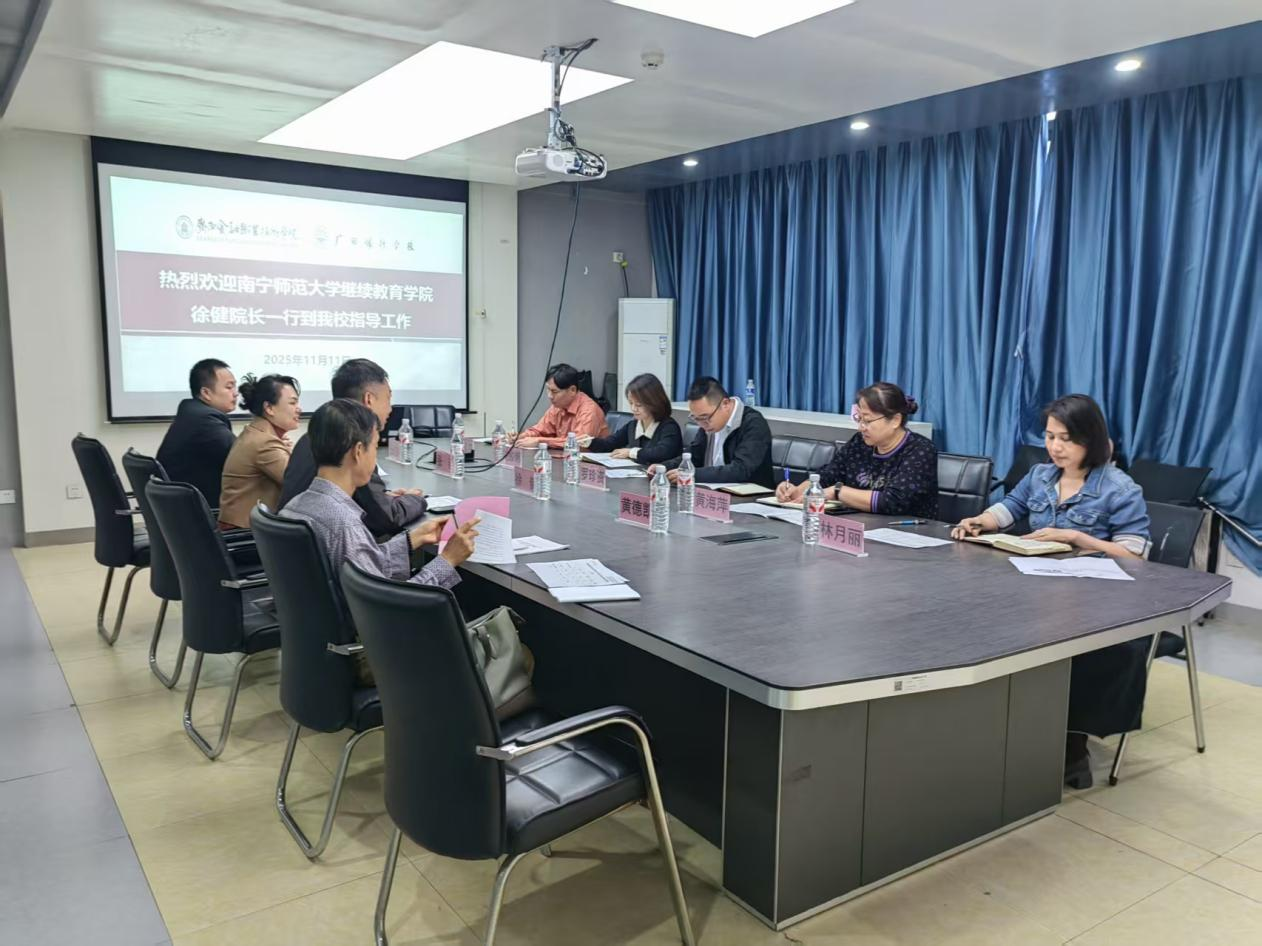 為深化繼續教育領域合作,共同探索發展新路徑,11月11日上午,南寧師范大學副校長王國紅帶領繼續教育學院一行蒞臨我校,就培訓與繼續教育工作開展交流。