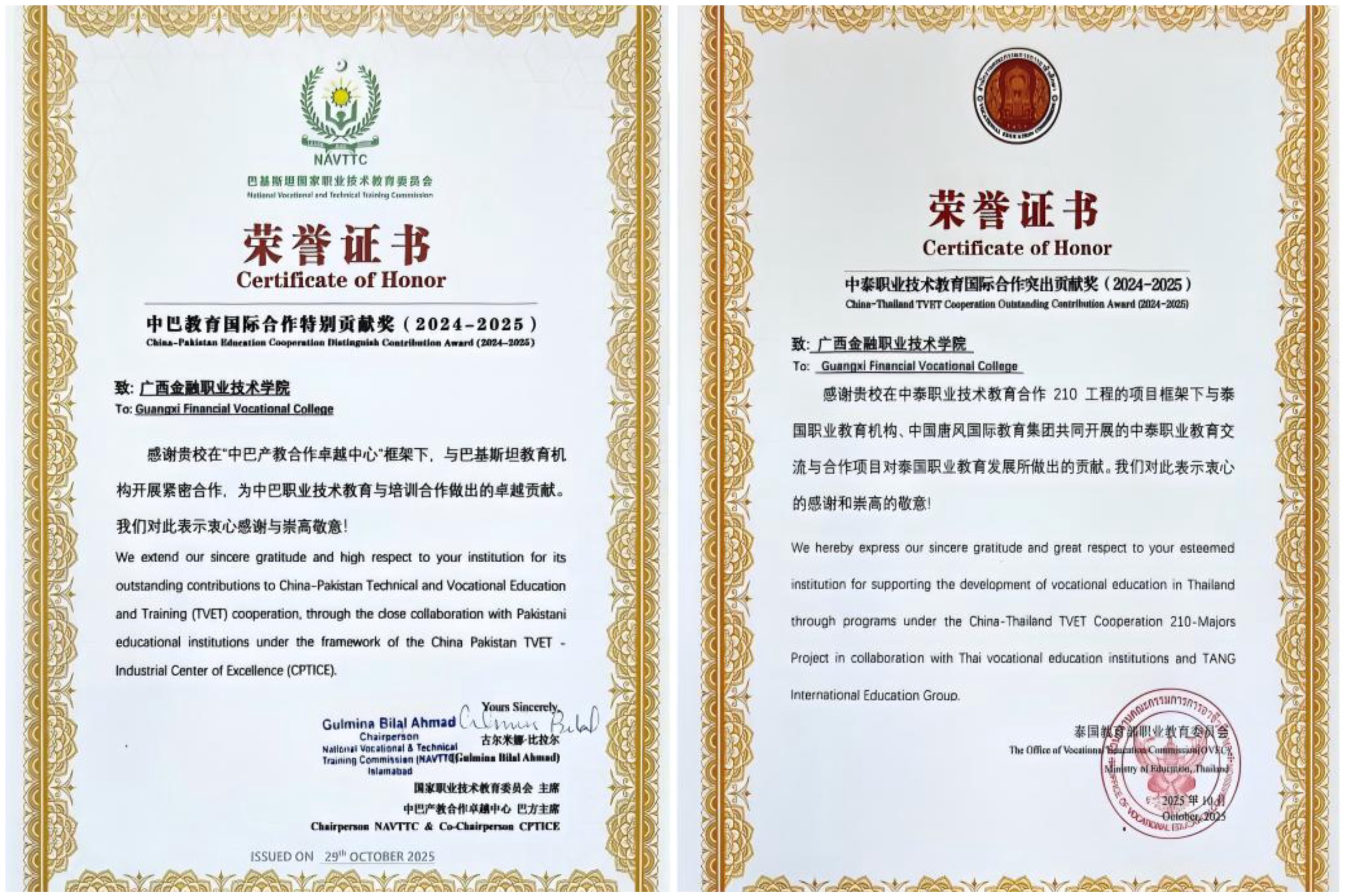 本次年會(huì)期間,兩項(xiàng)重磅榮譽(yù)的授予,為我校國(guó)際教育合作成果再添璀璨華章。為表彰我校在巴基斯坦、泰國(guó)職業(yè)教育人才培養(yǎng)領(lǐng)域的卓越貢獻(xiàn),巴基斯坦國(guó)家職業(yè)技術(shù)教育委員會(huì)特授予我?!爸邪徒逃龂?guó)際合作突出貢獻(xiàn)獎(jiǎng)(2024—2025)”,泰國(guó)教育部職業(yè)教育委員會(huì)同步頒發(fā)“中泰職業(yè)技術(shù)教育國(guó)際合作突出貢獻(xiàn)獎(jiǎng)(2024—2025)”。這兩項(xiàng)殊榮不僅是對(duì)我校近年來深耕中巴、中泰職業(yè)教育交流合作的高度肯定,更彰顯了巴基斯坦、泰國(guó)教育主管部門對(duì)我校在跨國(guó)產(chǎn)教融合實(shí)踐、本土化人才培養(yǎng)模式構(gòu)建等方面付出的努力與取得成果的充分信賴。