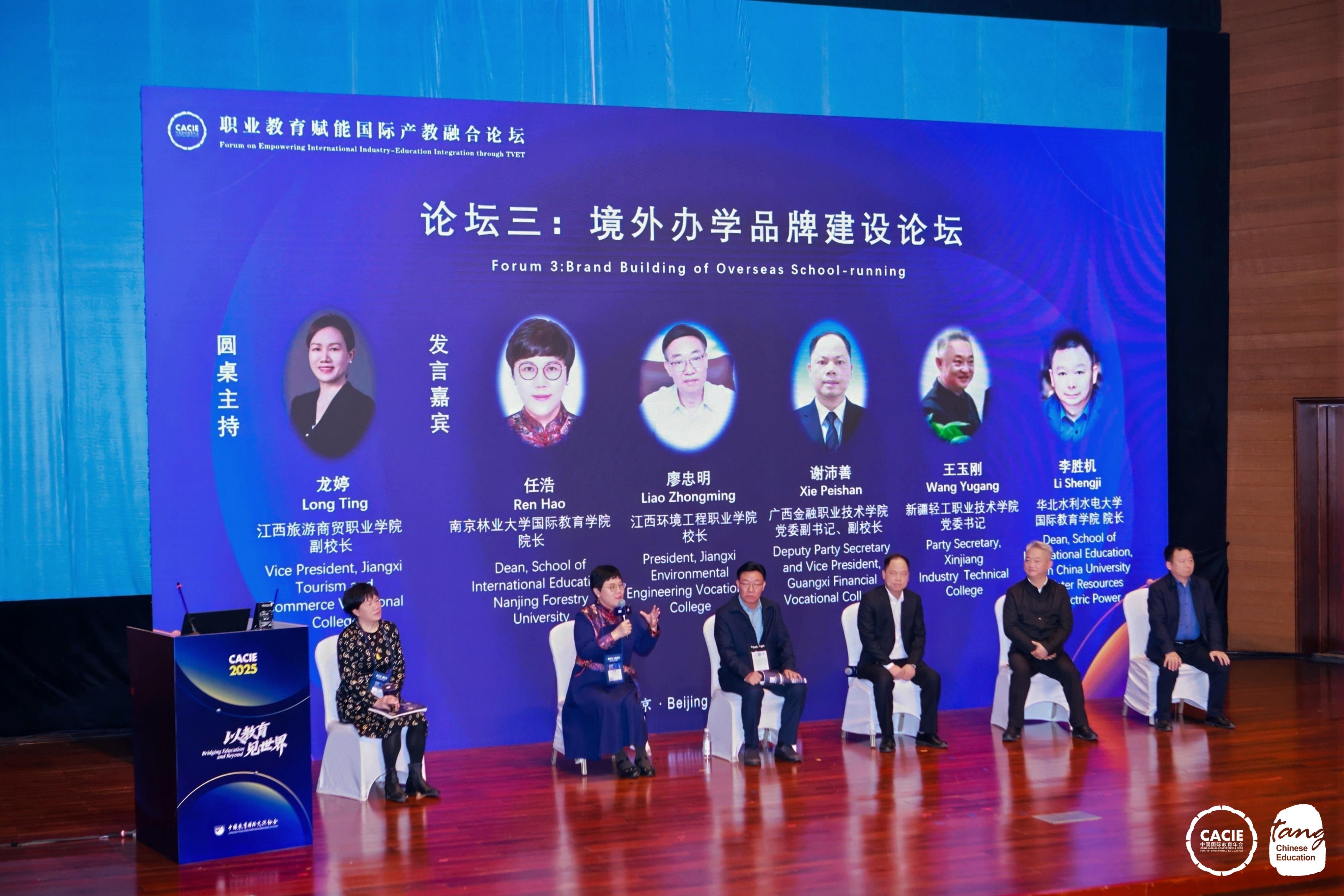 作為本次年會(huì)的關(guān)鍵環(huán)節(jié),職業(yè)教育賦能國(guó)際產(chǎn)教融合論壇吸引了國(guó)內(nèi)外教育領(lǐng)域與產(chǎn)業(yè)領(lǐng)域的諸多權(quán)威人士參與。黨委副書記、副校長(zhǎng)謝沛善受邀參與圓桌對(duì)話環(huán)節(jié),圍繞“境外辦學(xué)品牌建設(shè)”這一主題,結(jié)合我校職業(yè)教育境外辦學(xué)的人才培養(yǎng)模式,表明我校始終致力于打造廣西面向東盟的職業(yè)教育開放合作創(chuàng)新高地。通過校校企企四方協(xié)同、海外平臺(tái)共建、跨境生態(tài)融通等對(duì)外開放模式,助力東盟區(qū)域經(jīng)濟(jì)實(shí)現(xiàn)高質(zhì)量發(fā)展,在國(guó)際交流合作中持續(xù)提升“現(xiàn)代工匠”這一品牌影響力,為推動(dòng)我國(guó)職業(yè)教育高質(zhì)量“走出去”、促進(jìn)教育鏈與產(chǎn)業(yè)鏈跨國(guó)深度融合貢獻(xiàn)了本校的智慧。