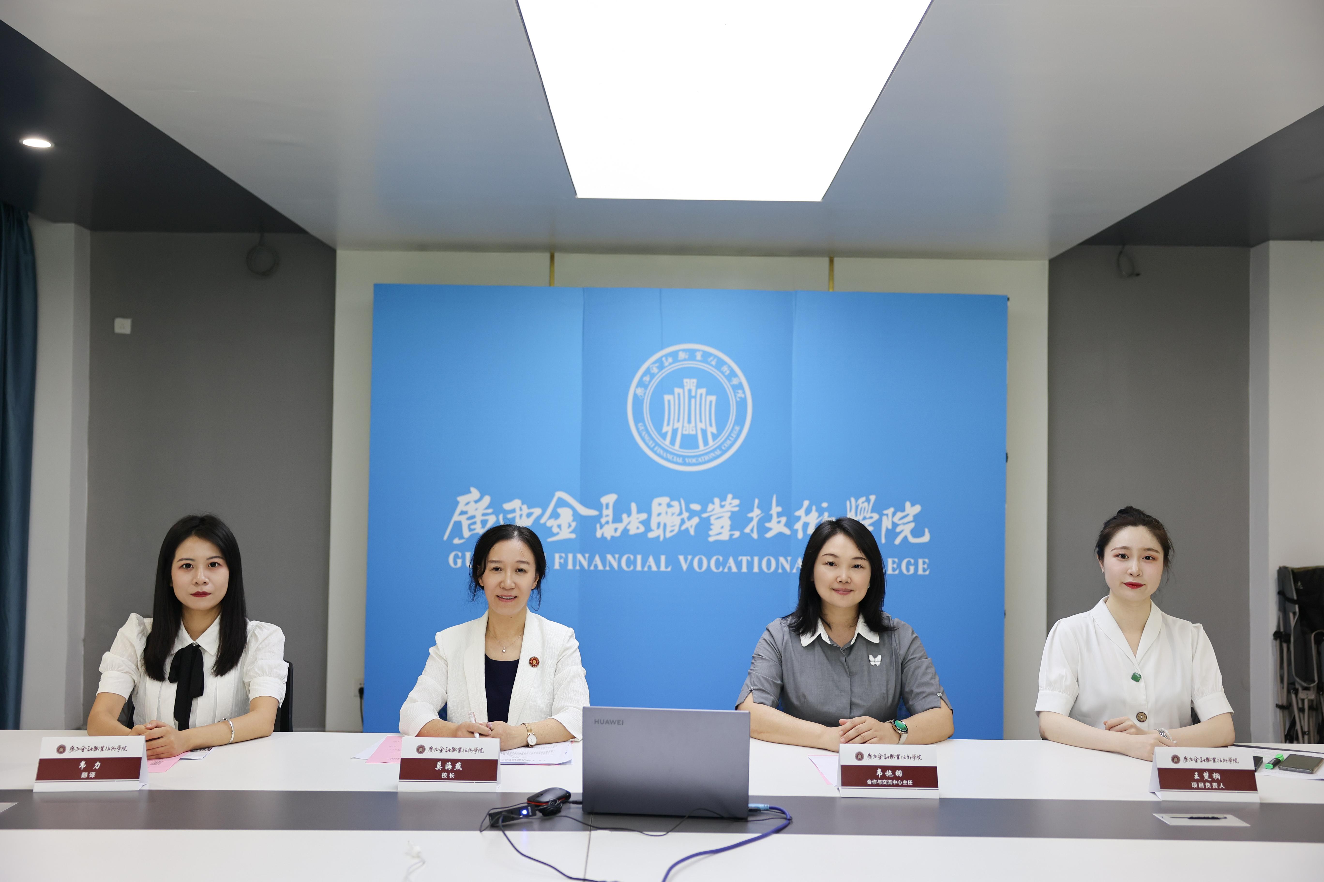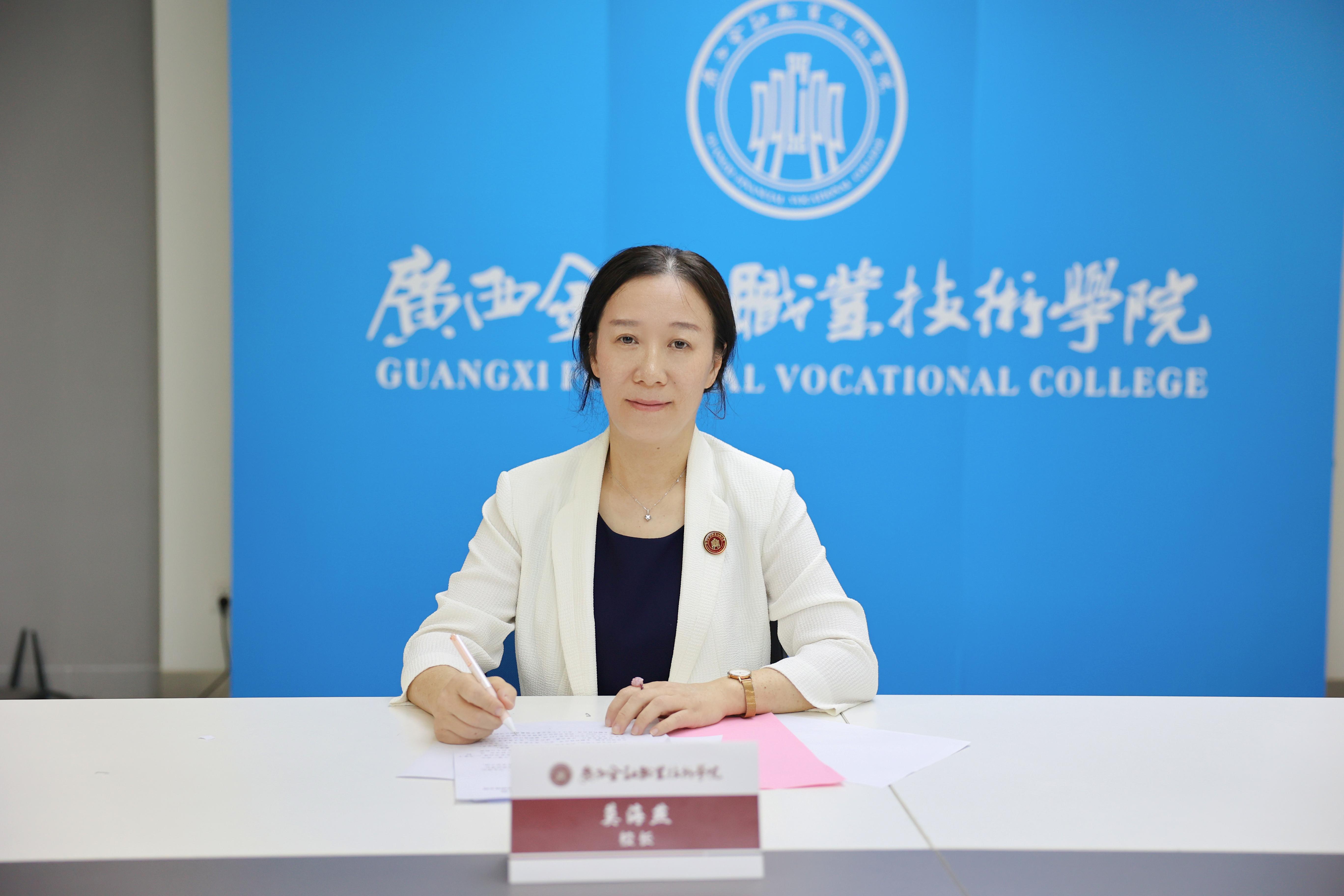 莫海燕校長在致辭中表示,中國和東盟山水相連、人文相通,友好交往源遠流長。今年是中國東盟全面戰略伙伴關系開局之年和RCEP生效實施之年。做為廣西“雙高計劃”建設學校,和享有“廣西金融人才的搖籃”之美譽高等職業學校,我們愿與各國職業學校一道,共同深入貫徹落實習近平主席和東盟國家領導人達成的系列共識,我們愿與東盟國家職業學校建立多層次、立體化的教育交流合作,為構建更為緊密的中國—東盟命運共同體提供強大的文化支撐。