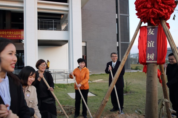 院領導與德明財經科技大學師生代表共同栽種友誼之樹并立牌,以示我院與德明財經科技大學友誼長存。