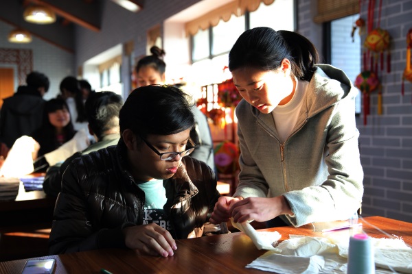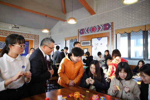 隨后,沈書記到民族文化示范基地與兩校學生同樂,分享中華優秀傳統民族文化的手工技藝。