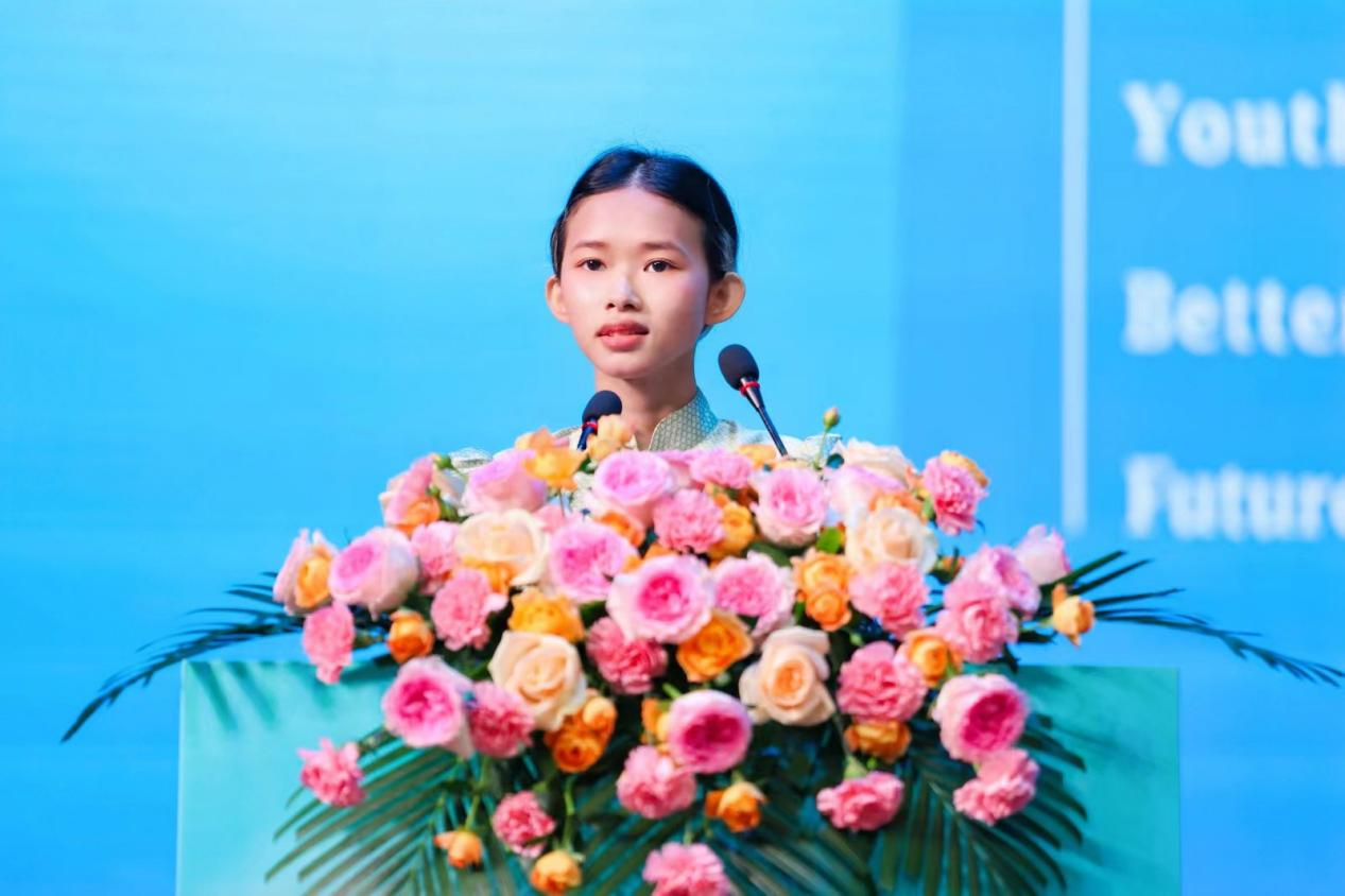 在發言中,蔡小麗同學圍繞“青春融入世界,共創美好未來”的主題,從家庭成員對中國的喜愛講起,表達了在家庭氛圍的影響下,她很早就期待到中國學習深造,并成為一名中老文化交流使者的愿望。
