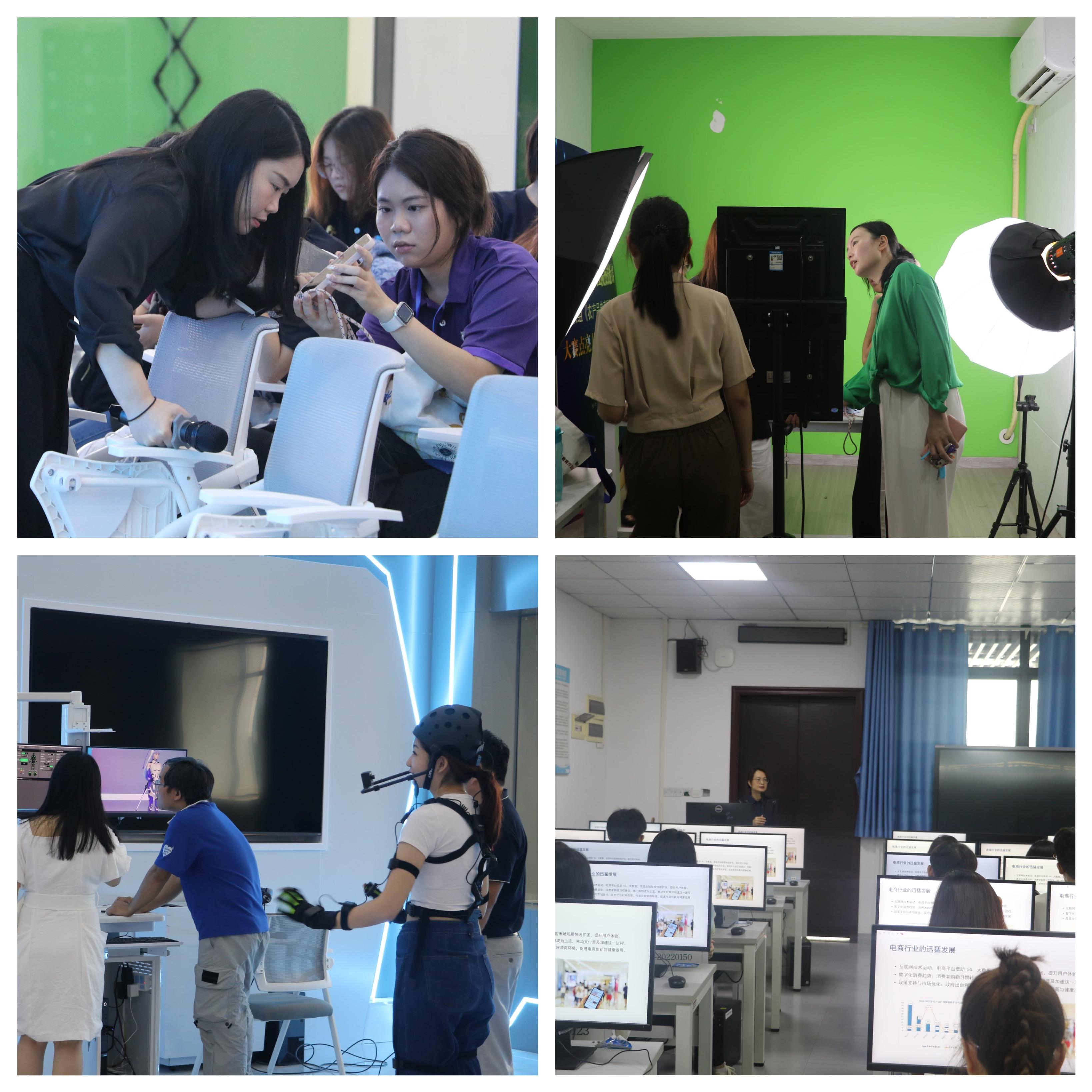 本次交流培訓課程在數字貿易學院RCEP數字跨境電商虛擬仿真實訓基地開課。馬來西亞拉曼理工大學的32位師生在3D交互式大屏區域、VR實訓區域、虛擬仿真研創區域、數字人實訓四大區域體驗不同的課程內容,模擬直播帶貨,學習圖形和圖像處理等技能,分析國內網店平臺商品圖片展示特點等。拉曼理工大學各位師生們不僅學習到中國先進的電商直播技術和教學方法,也更深刻地了解到中國市場的需求。