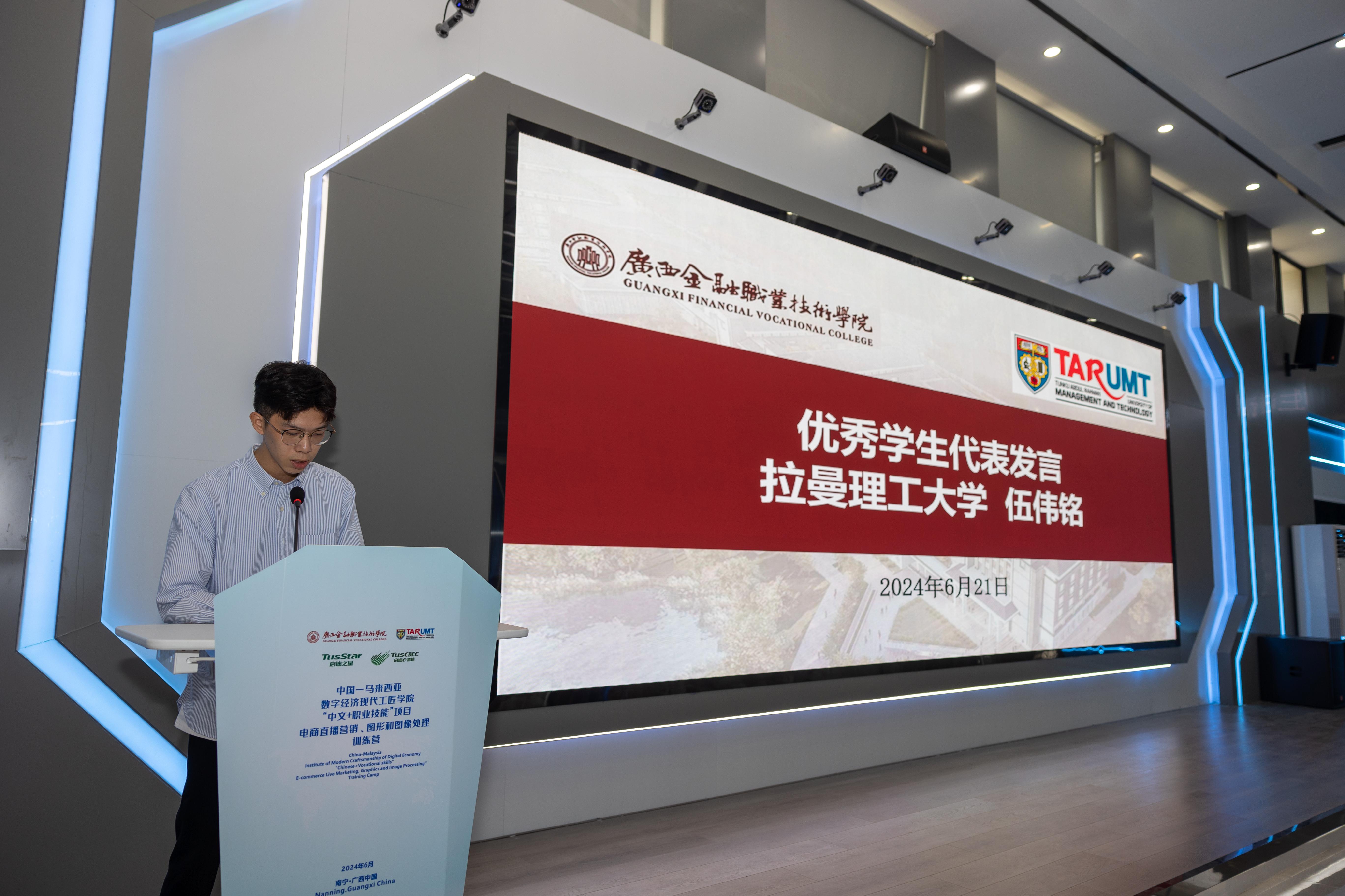 拉曼理工大學優秀學生代表伍偉銘發言